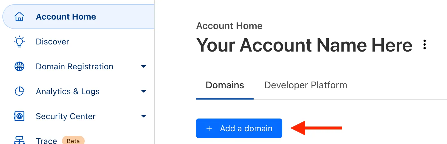 Section titled “Adding a Domain Name to Cloudflare”To add a domain name to Cloudflare, you have two options: